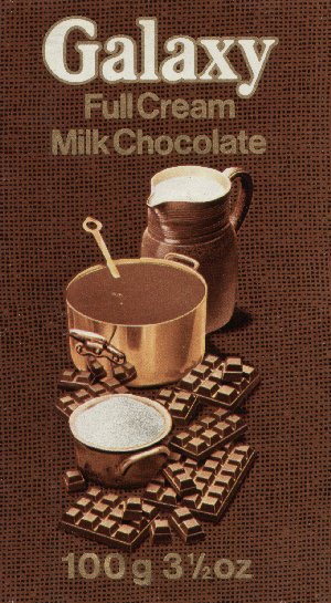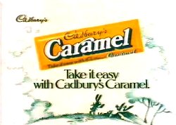 Caramel Milk chocolate bar with caramel centre. 50g/1.8oz. Jingle: 'Take it easy with Cadbury's Caramel'. (Cadbury's).