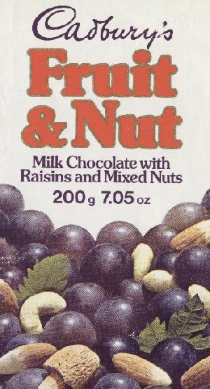 Double Decker Bar. Milk chocolate filled with nougatine, crisp rice, cornflakes, and raisins. (Cadbury's).